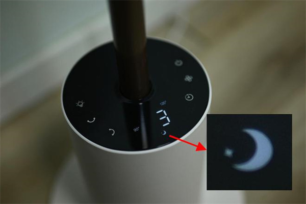 调到睡眠风时,显示屏上显示月亮标识,这时循环扇会从当前档位开始,每30分钟降低一档,直到降到最低档;