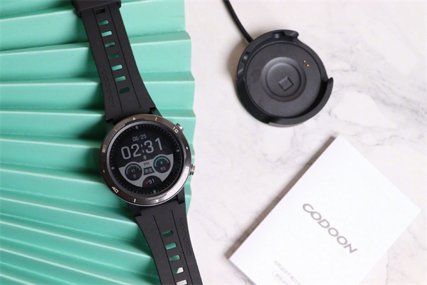 除了手表,包装盒内还有一份说明书、一个充电底座和一份跑步手册。咕咚X3-RE智能运动手表的充电方式与普通手表不太一样,不再是传统的充电口,而且将手表放在专属的充电底座内充电。这种方式能够避免汗水一类的杂物进入充电口,保证手表的使用寿命。