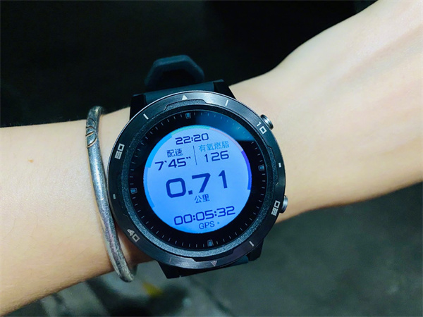 在运动方面,咕咚X3-RE运动手表有户外跑、室内跑、健走、室内健走、骑行、登山和泳池游泳八种选项,少荣常用的是户外跑运动。点击户外跑选项以后,手表会即刻进入GPS定位,并开始显示各项运动指标,比如公里数、配速、心率、时间和卡路里等等,也可以通过查看心率来确定自己是处于热身放松、有氧燃脂或有氧耐力阶段,进而调整运动节奏。