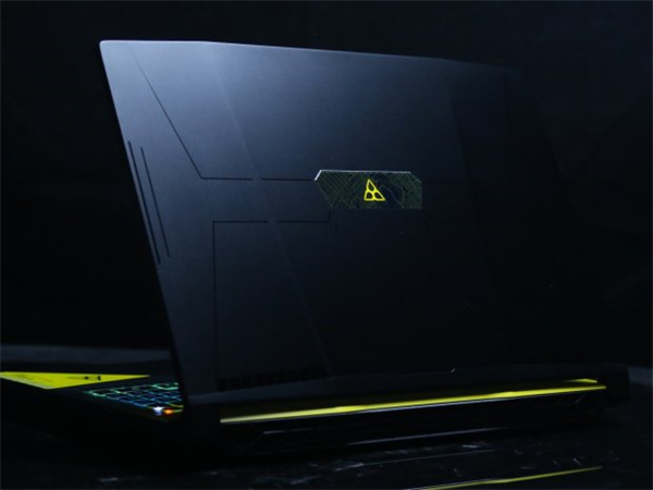 中间是一个黄色的《彩虹六号:异种》的干员LOGO灯,取代了以往作为微星品牌标识的龙盾LOGO,这在微星笔记本产品历史上是相当稀罕的。