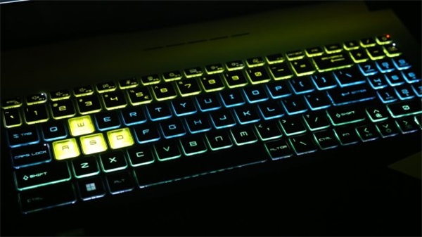 微星神枪手15 彩虹六号:异种联名款配置了一块99键的炫彩光谱电竞键盘,其中W、A、S、D4个游戏常用的行动键采用了独立的黄底水晶键帽,在整个键盘的布局中非常显眼,整块键盘支持黄、蓝、绿三色光谱背光,非常贴合《彩虹六号:异种》的色彩风格。