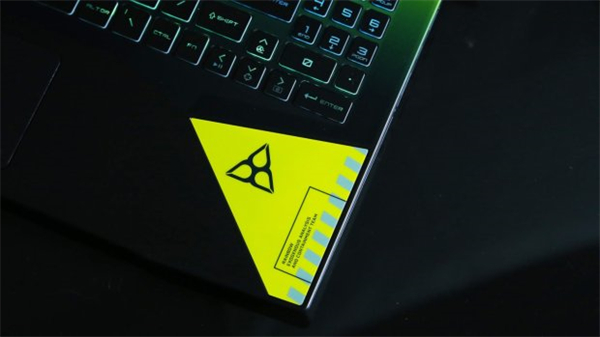 键盘右侧的掌托处贴了一张《彩虹六号:异种》的LOGO水晶贴,为游戏本的外观增添了不少色彩。