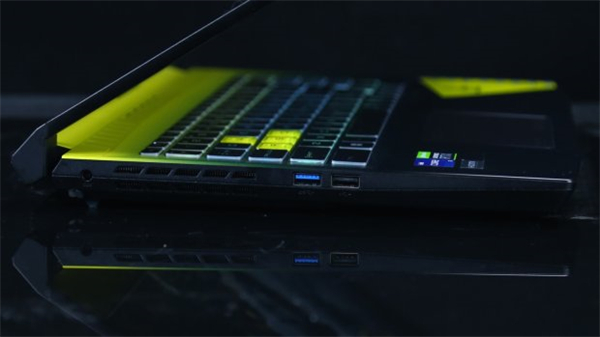 机身左侧除了圆柱形外接供电接口之外,还配置了1个USB3.2 Gen1 Type-A和1个USB2.0 Type-A接口。