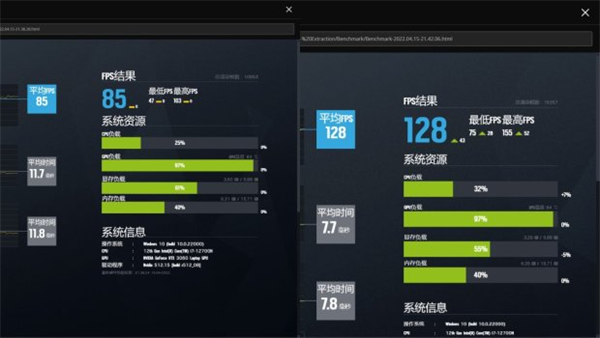 3DMark NVIDIA DLSS功能测试,在DLSS关闭下得分为23.93FPS,DLSS开启得分为58.44FPS。