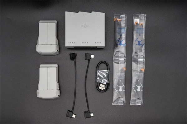 我们拿到的是带屏遥控器版本,还包括长续航电池版本的畅飞续航包。带屏遥控器版本包括DJI Mini 3 Pro无人机、DJI RC遥控器、一块电池、一套备用桨叶、螺丝刀、充电线和说明书。畅飞续航包包括两套备用桨叶、两块电池(长续航版本)、充电管家、充电线、两根数据线(安卓口和Type-C口)以及说明书。