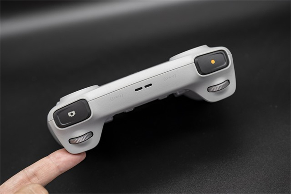 我们拿到的是带屏遥控器的版本,因此配备的是DJI RC遥控器。这款遥控器搭载的是DJI O3图传,内部安装的是DJI Fly APP系统,这个我们在后面也会单独为大家介绍。遥控器的屏幕显示效果非常优秀,在明亮的环境下观看,它的亮度表现也足够。遥控器上的所有按键和摇杆都是经过精简的,只保留与飞行和航拍有关的,让用户的体验更纯粹。遥控器也可以插TF卡,经过图传的航拍视频画面可以同步在遥控器中记录(但视频规格与无人机录制的不同)。