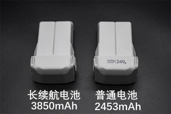 DJI Mini 3 Pro的电池系统进行了比较大的提升,电池的电量、体积和充电管家都有了明显的改进。DJI Mini 3 Pro的电池分为普通版本和长续航版本,两个版本的电池电量不同,普通版本电池为2453mAh,最大飞行时间为34分钟;长续航版本电池为3850mAh,最大飞行时间为47分钟。区分它们很简单,带有“249g”字样的就是普通电池,长续航电池正面无任何印字。针对续航的部分,我们后面也会单独介绍。