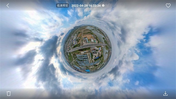 由于这一次DJI Mini 3 Pro具备无损竖拍能力,因此全景照片增加了一个模式。现在支持球形、180度、广角和竖拍四种全景照片拍摄模式。