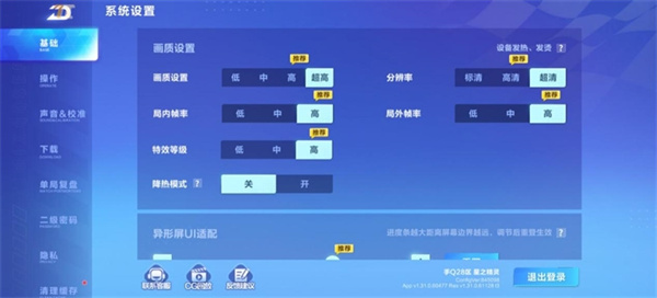 在《QQ飞车》中,我们将游戏的画质设置改为超高,分辨率改为超清,局内帧率、局外帧率改成高,特效等级为高。
