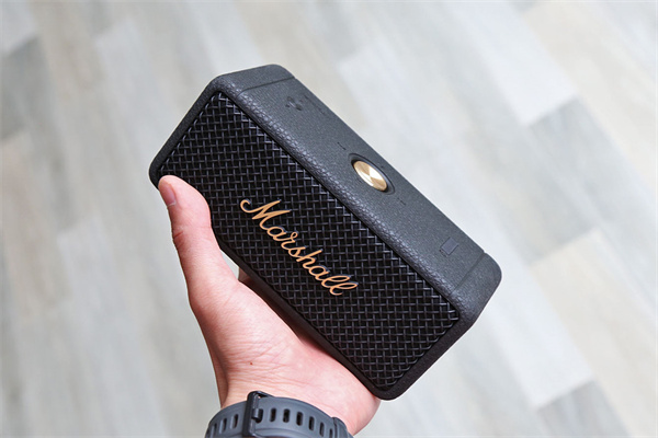 Marshall Emberton II 给我的第一印象,是外观设计和上代外观有着高度一致性,机身前后两面均设置有金属网罩,同时保留了标志性的手写体 Marshall Logo,显得很有力量感。