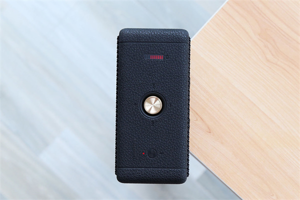 控制以及灯光显示逻辑也延续了之前的做法。机身顶部做了一枚蓝牙配对键以及一枚集成电源、音量、歌曲切换功能的多向控制按键,与之相邻的则是电量指示灯,几乎没有任何操作门槛。