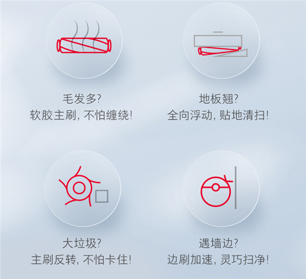 在边刷方面,这一次石头扫拖机器人T8 Plus使用的是动态可调速边刷,使用过扫地机的朋友们都知道,边刷设计不合理经常会扫飞垃圾,但对于边角处边刷力度不够很难清理彻底。所以石头扫拖机器人T8 Plus所使用的动态可调速边刷则能够让扫地机器人什么时候该用什么力度,通过算法的加持T8 Plus可以判定自己当前的工作环境。例如,当机器人处于开阔地面清扫时使用130转的低转速旋转,防止垃圾被扫飞;而当机器人在清扫墙角、家具腿附近时候,则会提速至2.5倍,以330转的高速率进行清洁,尤其是动物换毛季,经常会堆积在家具边角难以处理,通过T8 Plus的主动变速,使用高速率的转速将其扫除,轻松解决家庭清扫难题。