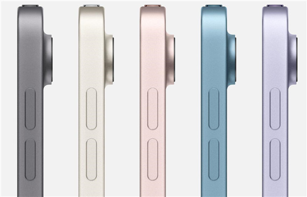 外观设计和前代机型基本一样,不过在配色上有变化,除了「深空灰色」相同之外,之前iPad Air 4机型的银色、玫瑰金色、绿色、天蓝色,被更新机型iPad Air 5的星光色、粉色、紫色、蓝色取代,新的配色感觉更沉稳、内敛、优雅知性,更能满足对颜色比较挑剔的用户。