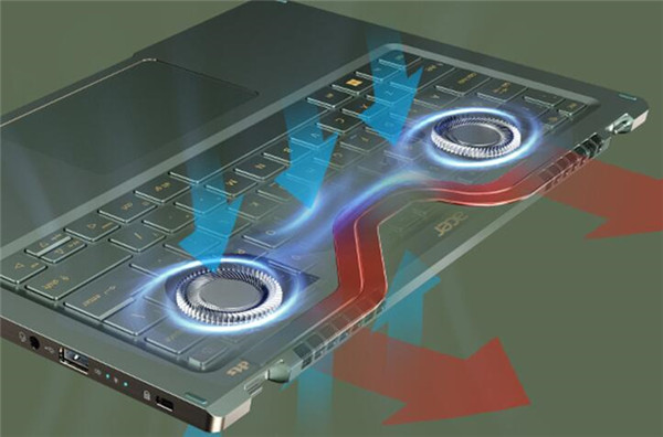 双风扇搭配大面积“双翼式"铜管对称扇热,结合立体风道,散热效率提升8%;传承掠夺者的风扇设计,均衡模式下噪声低至40dB的同时,通风量提升10%,散热更安静,强悍性能稳定舒适输出。
