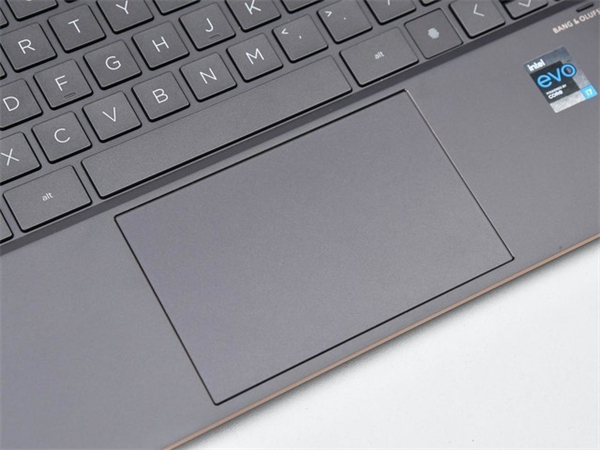 C面键盘表面覆盖了防油涂层,不易留有指纹,键程较长,回弹干脆,在轻薄本中这块键盘的手感是很不错的了。另外,方向键的设计也是秉承了惠普系的特点,左右键为正常大小,方便码字时回档进行修改。可以看到,整块键盘利用上了整个C面横向空间,键帽保持了较大的面积,无需花费时间便可以适应这块键盘的键入;最上面一排的快捷键带有开启/关闭摄像头和话筒的功能,方便视频会议时的使用;指纹识别模块集成进了键盘的右下角,整个C面看上去更加的完整和对称。