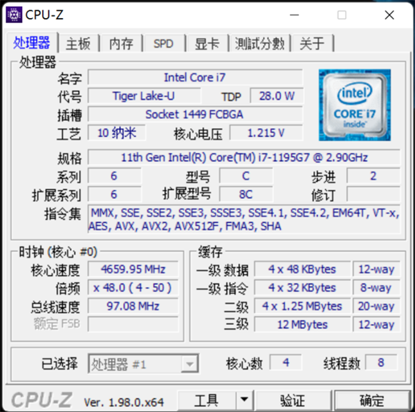 CPU:英特尔i7-1195G7处理器