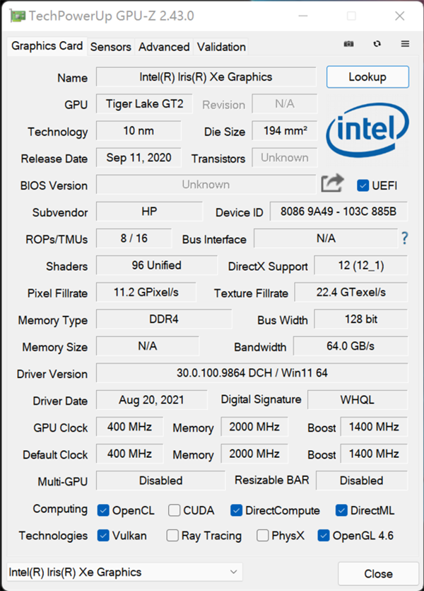 GPU:Intel Xe Graphics