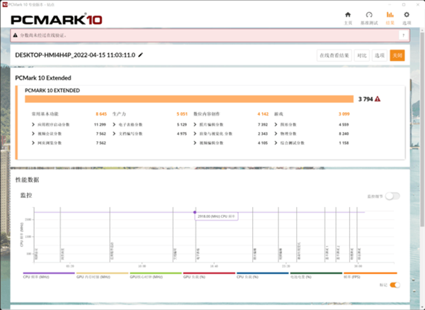 综合性能方面,使用PCMARK 10的Extended模式进行测试,最终总得分3794分,其中在包含应用程序启动、视频会议、网页浏览的常用基本功能部分得分8645分;在包含了电子表格和文档编写的生产力部分得分5051分;在包含了照片编辑、视频编辑、渲染的数位内容创作部分得分4142分;在游戏部分得分3794分。代表惠普Spectre x360 14英寸5G版可以很好的完成商务场景的应用。