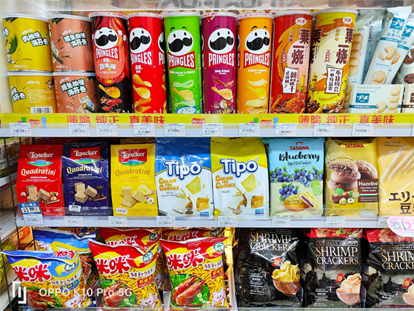下面这组拍摄商品橱窗的样张,涉及到的色彩也同样是非常多的,可以看出在整体的色彩饱和度方面,OPPO K10 Pro更胜一筹,会更加讨好眼球。iPhone13拍出来的色彩就比较“清汤清水”了,亮度也不太够,需要利用第三方修图软件来优化提升画面观感。