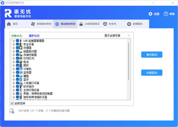 针对于系统数据安全,惠无忧提供了系统数据、驱动的备份功能,防止意外情况的发生,在首次打开惠无忧时可以很便捷的任意对硬盘进行分区从而进行备份操作。