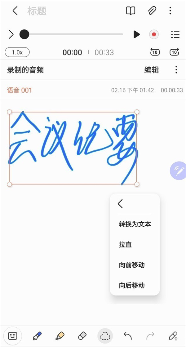 我们可以采用三星Galaxy S22 Ultra中的三星笔记功能,其支持语音标签和PDF注释功能。语音标签功能可以让大家记录笔记的同时记录音频为后期笔记整理提供对照。为了增加便捷性,三星笔记还可以识别手写内容,并将其转换为可以编辑的普通文本。