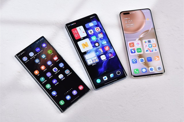 首先,我们先来对比三款手机的机身正面,在正屏幕方面三款手机的设计区别还是非常大的,虽然三款手机均采用了曲面屏,但vivo X Note与三星Galaxy S22 Ultra采用了居中挖孔设计,荣耀则采用了左上方双挖孔屏幕,所以vivo与三星的屏幕在视觉方面完整度更高。