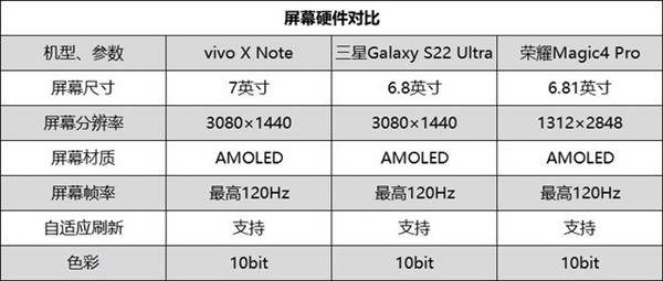 通过对三款手机屏幕硬件方面的对比,我们不难看出vivo X Note和三星Galaxy S22 Ultra都不错,屏幕拥有更高的像素。一直以来像素越多,就代表着画面越精细,同样的屏幕区域内能显示的信息也越多,所以在看电影或者是打游戏时会为大家带来更好的观感体验。