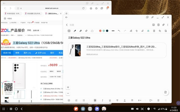 在改善输入效率问题的同时,三星Galaxy Tab S8+ 5G版还大幅度提升了多任务处理能力。三星Galaxy Tab S8+ 5G版拥有极为强大的自由多窗口功能,用户可以将大部分应用以浮动小窗的形式打开,并任意在桌面上进行拖动,当应用处于前台显示时会一直处于活跃状态。