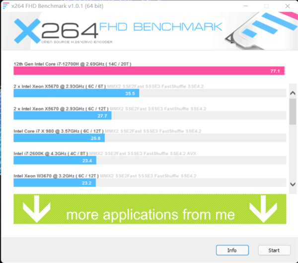 在X264 FHD BenchMark测试中获得了77.1fps,在X265 FHD BenchMark中获得了78.46fps,在内容生产力方面,说明其在多核性能方面有了十足长远的进步。