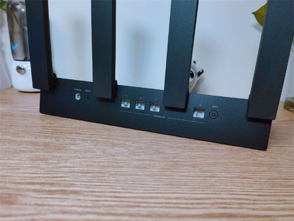 后置功能接口,分别为电源与复位区,四颗千兆网口,支持WAN/LAN二合一使用,对于网路小白来说,随意插入网线即可使用,非专业也可快速搭建网络使用。外置WPS功能按键,多一重安全防护使用,更好的保证家庭网络使用的安全性。
