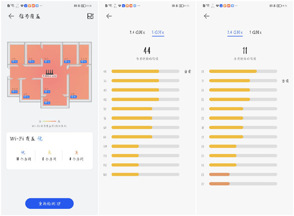 首先,在路由绑定智慧生活后,会建立家庭结构的大概平面图,通过路由摆放来测试不同区域的网速,呈现不同房间的信号强度。