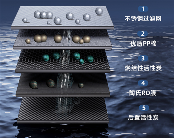 西屋F7净饮一体机采用的是西屋3芯4重过滤系统,与之搭配的便是美国陶氏RO膜,两者的强强联手,使得它的净化深度高达0.0001微米,无论是杂质、余氯还是细菌、病毒,都能一并拦截掉,说白了,就是出水直饮,你可能会担心这样的水喝起来会不会怪怪的,别担心,它后置了碳基回路系统,能够有效改善水质口感。