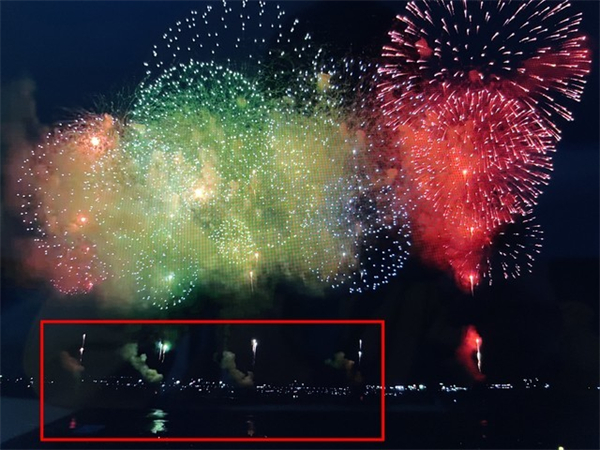 HDR开启时,右侧红框中光芒的呈现效果非常柔和,左侧红框区域也没有过曝现象。