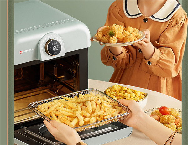 传统烤箱跟空气炸做出来的食物口感还是有区别的,空气炸是类似油炸的口感,但比油炸更少油少脂,更适合烤肉、薯条等料理小食的制作,属于料理类烤箱,而烤箱的优势在于可以胜任专业面包、蛋糕类食品的烘焙制作,属于烘焙类烤箱。如果家里厨房空间有限,预算也有限,只能二选一的话,那或许,海氏K7食光机烤箱会是那个最佳的答案。