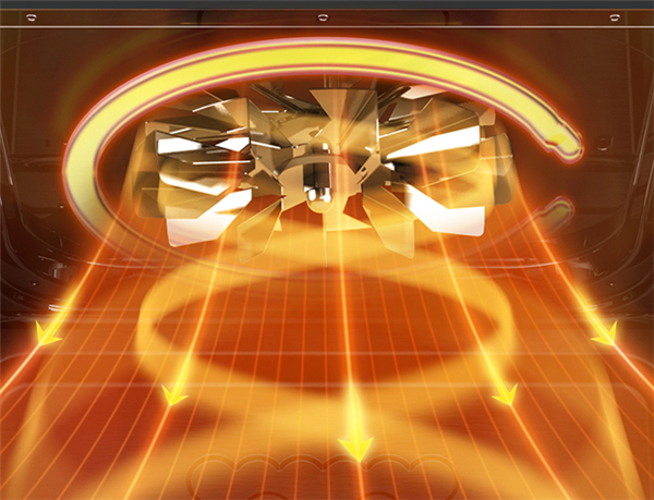 其次,是空气炸的加热系统,海氏K7食光机烤箱在顶部装有环形光波加热管+超高速风机,组合形成立体风幕,实现360°循环热风无需翻面均匀受热;而光波管的远红外辐射+强劲的高温循环热风,能有效逼出食物油脂,实现食物酥脆口感的同时又能做到脱脂少油。因此海氏K7食光机基于上述强大的系统加持,将烘焙和料理做了完美结合,不再为选择烘焙or料理烤箱纠结。