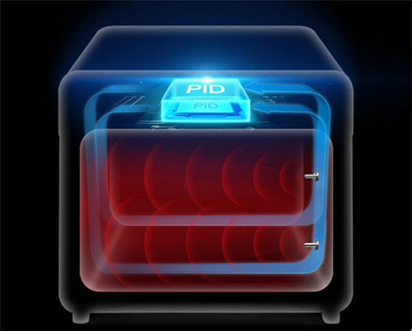 海氏K7食光机烤箱内部上下4根加热管合理布局均匀发热,双感温探头+PID电子控温算法精准感温控温,4面搪瓷内胆聚能保温+保温棉保温防烫+双层门玻璃(内层Low-E反弹热量),专业烘焙烤箱的属性十分完备。
