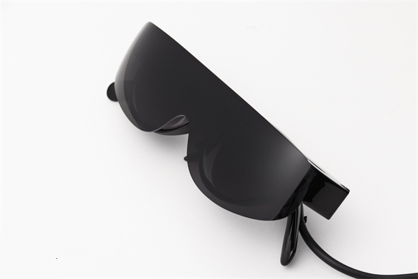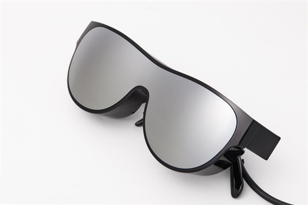 下面这款镜片外侧为镜面设计,镀银的表面在视觉上呈现出一种高端酷炫的气质,看起来比较霸气。不过这款镜片几乎不透光,而且全包的设计可带来更沉浸的体验,适合在家观影使用。