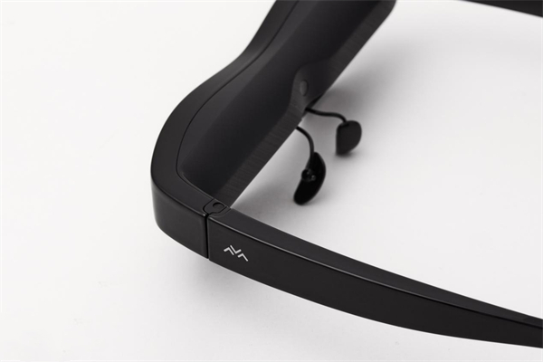 同时,不同于部分智能眼镜粗壮的镜腿对耳朵上部造成压力,雷鸟 Air 的镜腿在曲线设计和材质改良上均有较大突破。镜腿材质为弹性尼龙材料,质轻、柔韧性好、即便长时间佩戴也不会觉得压耳朵。
