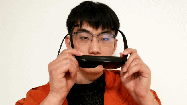 对于近(远)视用户,平时佩戴眼镜的同时再戴上雷鸟 Air,小编实测这么做也是可以的,依然能稳稳戴上,且没有不适感,只要你的眼镜形状不是特别奇特就行。