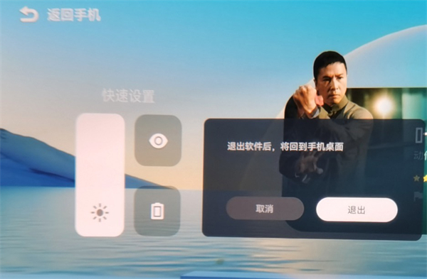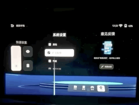 不过,内容数量的问题,可以通过另一个方法解决,就是投屏。点击交互界面的左上角的“返回手机”,即可进入手机投屏界面,就是将手机的画面串流到眼镜中。