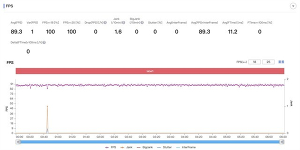 首先是《和平精英》,在流畅画质、90帧的设定下,一局游戏结束后一加Ace的平均帧率为89.3fps,几乎实现了满帧运行。同时根据性能狗的监测数据可以看到,游戏全程无卡顿,仅出现了一次小幅掉帧,实际体验十分流畅。