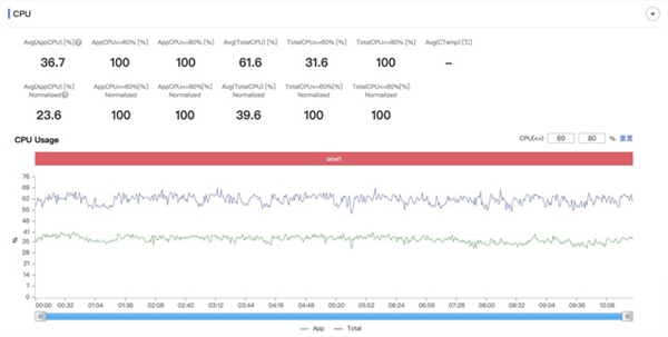 下面我们在悬浮窗里开启“90帧”插帧(游戏内画面设置依然为60帧),手机的帧数稳定性、GPU负荷、CPU负荷、发热和耗电都出现了明显的优化,玩家可以体验到长时间的90帧画面。CPU使用率为36.7%,同时CPU使用率曲线明显变得更加平缓,游戏运行更加稳定。