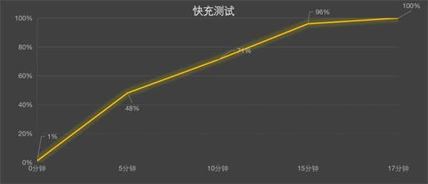 在我们的实际测试中,使用一加Ace搭配原装150W充电器从1%进行充电。5分钟后,手机电量达到48%,17分钟即可充满。这样的充电速度,让随时补电真正成为现实。