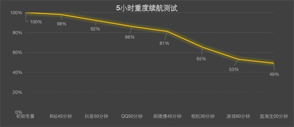 从结果中可以看到,经过5小时测试后,一加Ace剩余电量为49%,总体表现达到了主流水平,满足用户的一天使用绰绰有余。