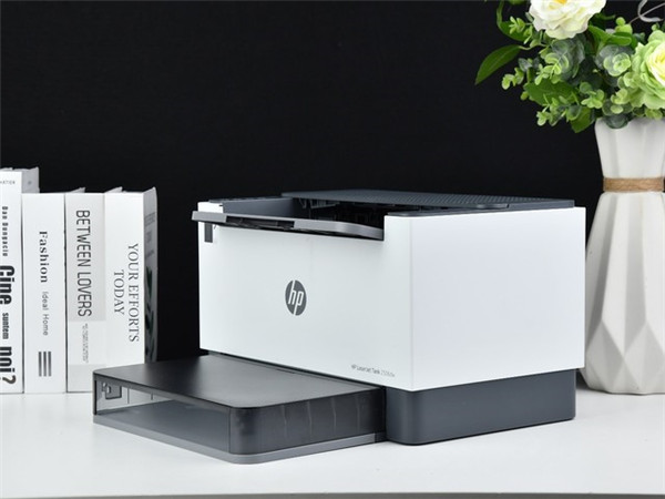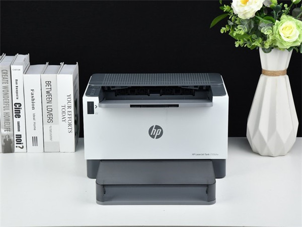 外观方面,惠普LaserJet Tank 2506dw激光打印机采用了经典的黑白灰色系,机身顶部使用黑色更易凸显打印好的文档,周边采用白色易于融入周边装修风格。