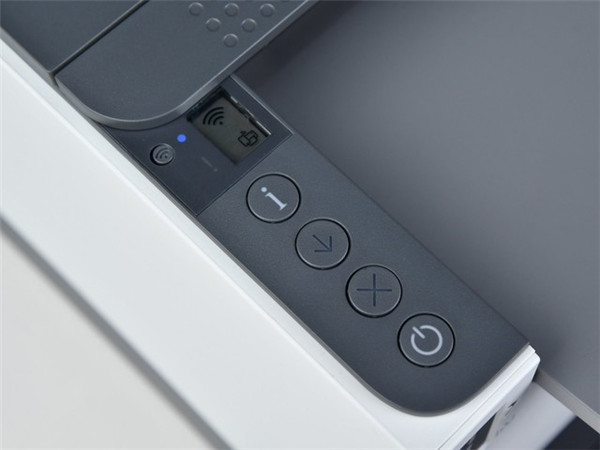 按键方面,在机身顶部左侧为这款产品的操控单元,惠普LaserJet Tank 2506dw激光打印机的操作单元仅有五个按键,按键底部灯光采用引导式设计,按键底部灯光亮起表明该功能可以使用,这种在细节上的友好设计让终端用户操作更为简单且高效。