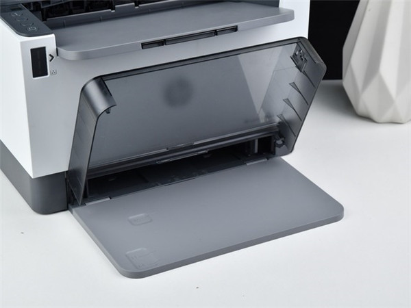 设计方面,相比于前代产品,惠普LaserJet Tank 2506dw激光打印机在进纸盒上有所优化,其保持250页纸张容量的同时,该产品采用了半封闭半透明纸盒设计,以便用户可以更为方便的观察到纸张的容量。