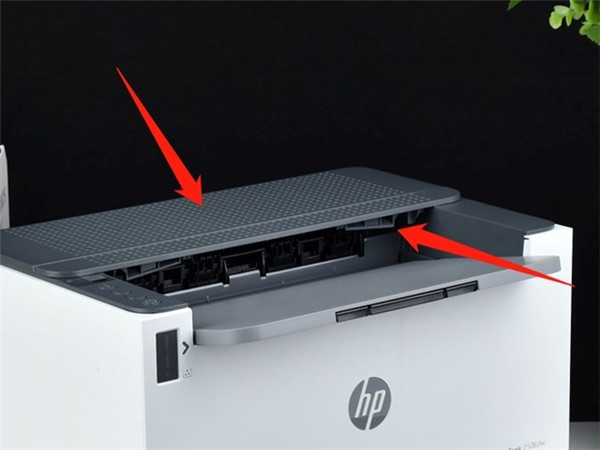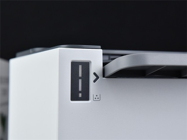 在出纸口区域有两处优化设计值得一提,首先是出纸口上方采用的镂空设计有效的解决了机身散热问题从而保证产品的耐用性;其次是在惠普LaserJet Tank 2506dw激光打印机出纸口处采用了U型下压式设计,这种设计让打印出来的文档更为平整减少卷曲的概率。
