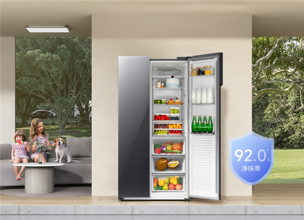 米家冰箱对开门630L 冰晶版内置净味抗菌模块,采用净味活性锰催化分解技术,活性锰催化剂是以二氧化锰为基础的氧化物纳米催化材料,具有分解甲醛、VOC、臭氧的功能,包括分解动植物腐败气味,细菌发酵气味等各种异味,净味率达92%,有了该净味模块,能够让冰箱内长时间保持清新环境,有效避免食材串味。同时,由于其氧化性特点,还具有良好的抗菌性能,大肠杆菌抗菌率为96.2%,金黄色葡萄球菌抗菌率为98.9%,实现高效分解异味,抑制细菌滋生。