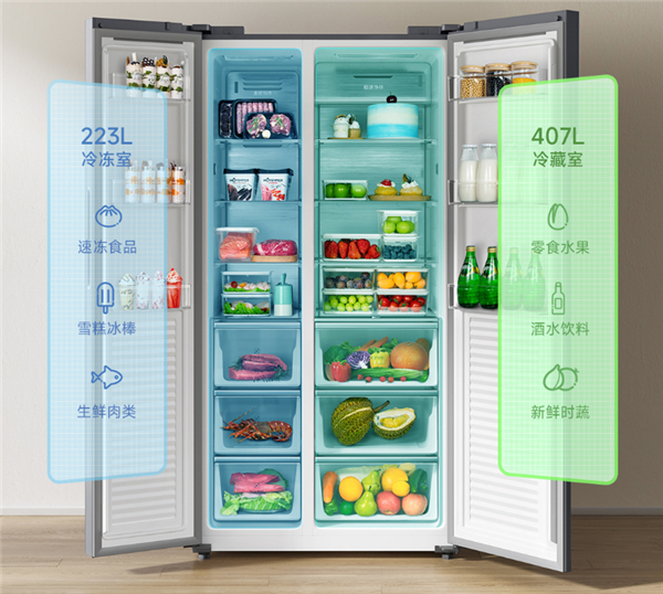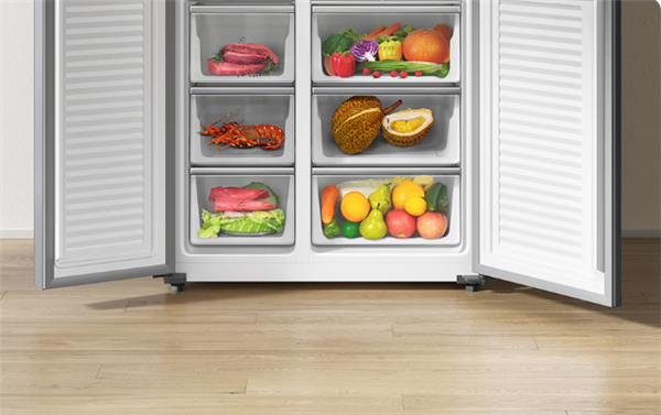 米家冰箱 对开门630L 冰晶版拥有630L海量空间,能够满足一个大家庭的储藏需求,3+3的独立抽屉空间,20格精细分储空间,能够让各类食材找到它更合适的位置。